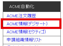 会員ページの左メニューの「自動化(デジサート)」「ACME情報リスト」をクリックします。