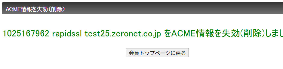 上記のACME情報を失効してよろしければ「ACME情報を失効(削除)を実行する」ボタンをクリックして下さい。